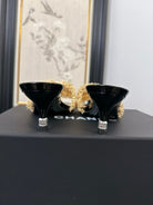 cc25 slide sandal 65mm ruffle bow heels black grosgrain gold canvas 233583