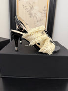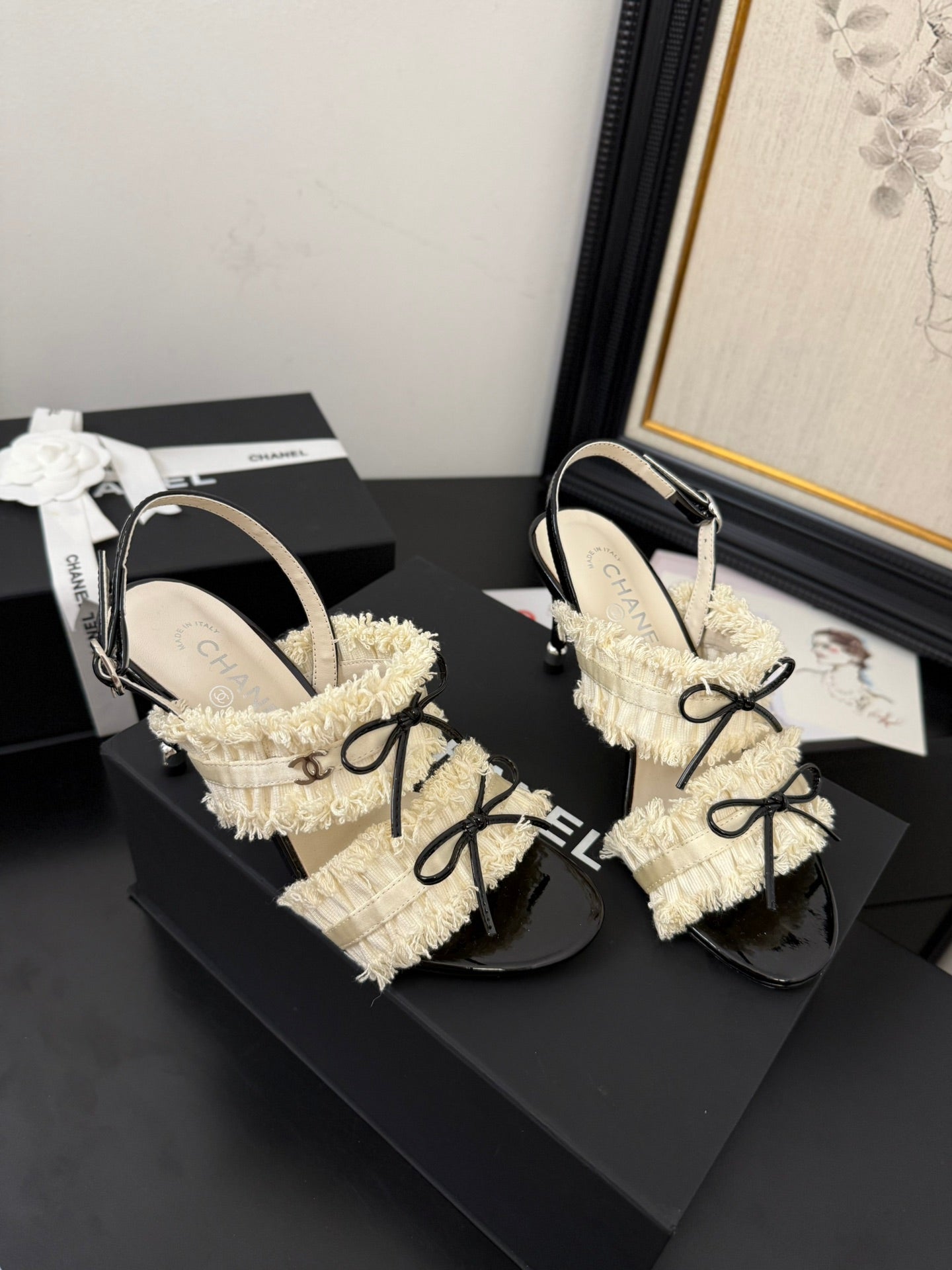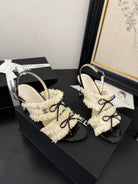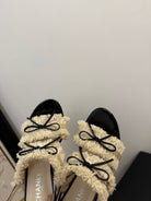cc25 slingback sandal ̣90mm bow black grosgrain white canvas 233593