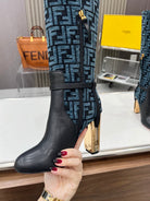 FENDI knee boots high heel monogram blue black cowhide 521217