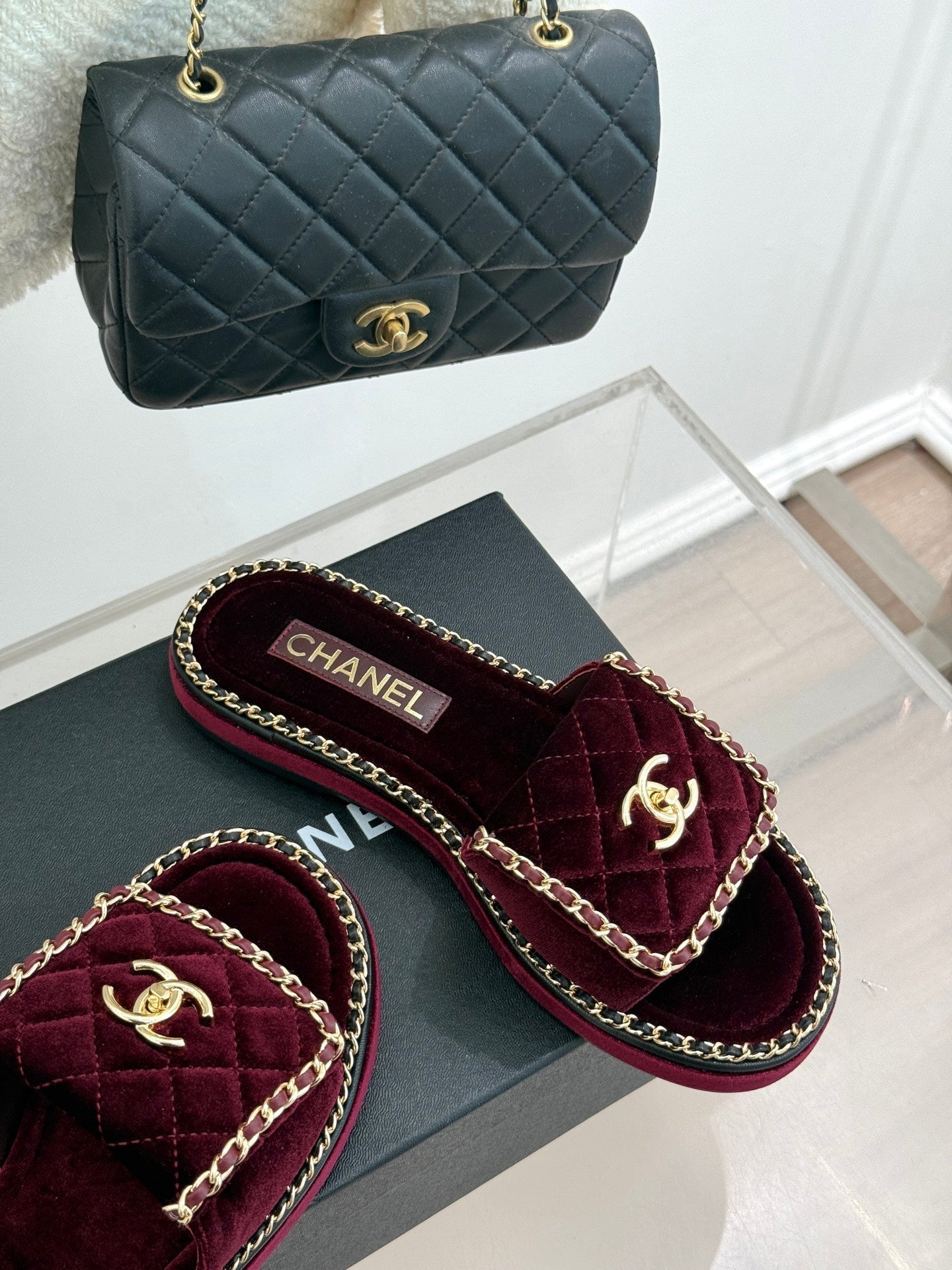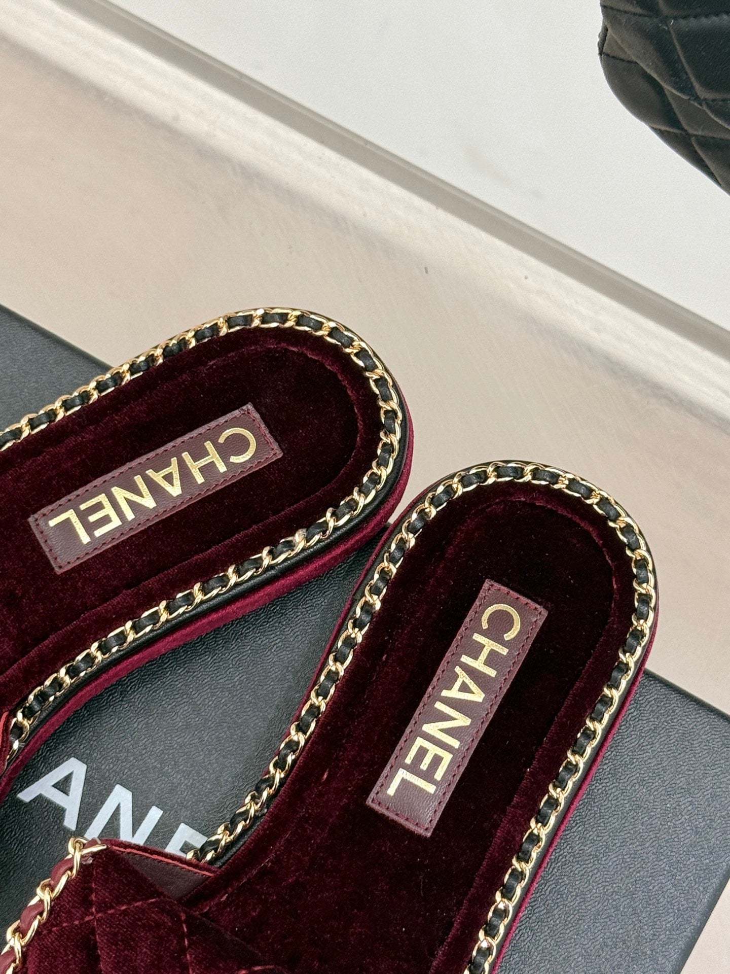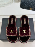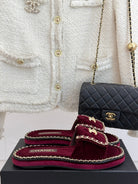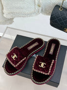 FLAT CHAIN HEART SLIPPER IN PLUM PURPLE VELVET