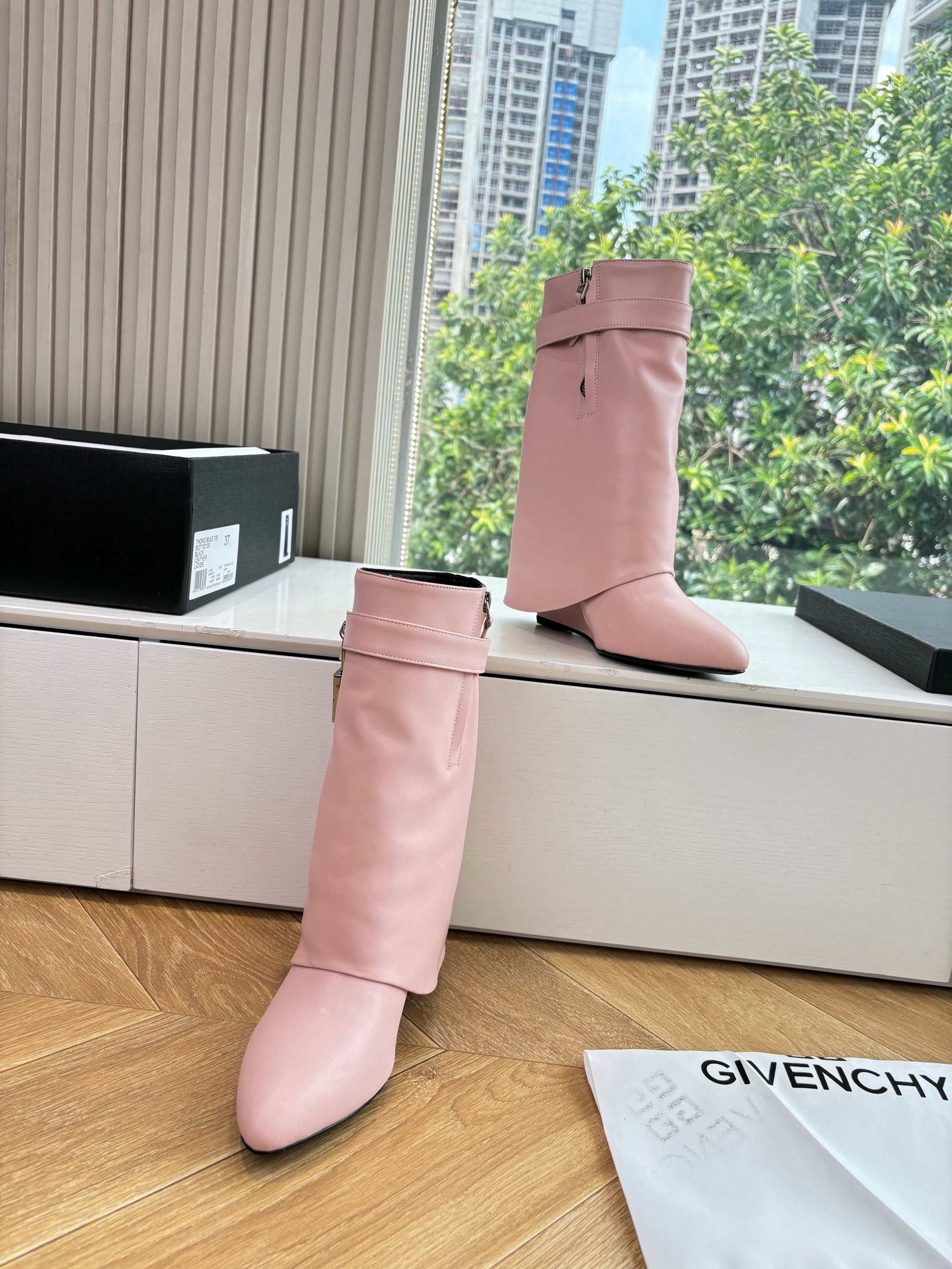 Givenchy FW25 Shark-Lock Ankel Boots Pink Cowhide Sliver HW 507186