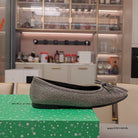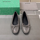 RHINESTONE BALLET FLATS WITH BOW IN GRAY SHEEPSKIN