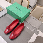 RHINESTONE BALLET FLATS WITH BOW IN RED WAX-OIL SHEEPSKIN