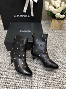 SHORT BOOTS BLACK LAMBSKIN ATTACH METAL