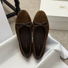 The Row Ballet Flats Bow Dark Brown Suede 290730