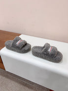 THICK-SOLED SLIPPERS IN GRAY WOOL