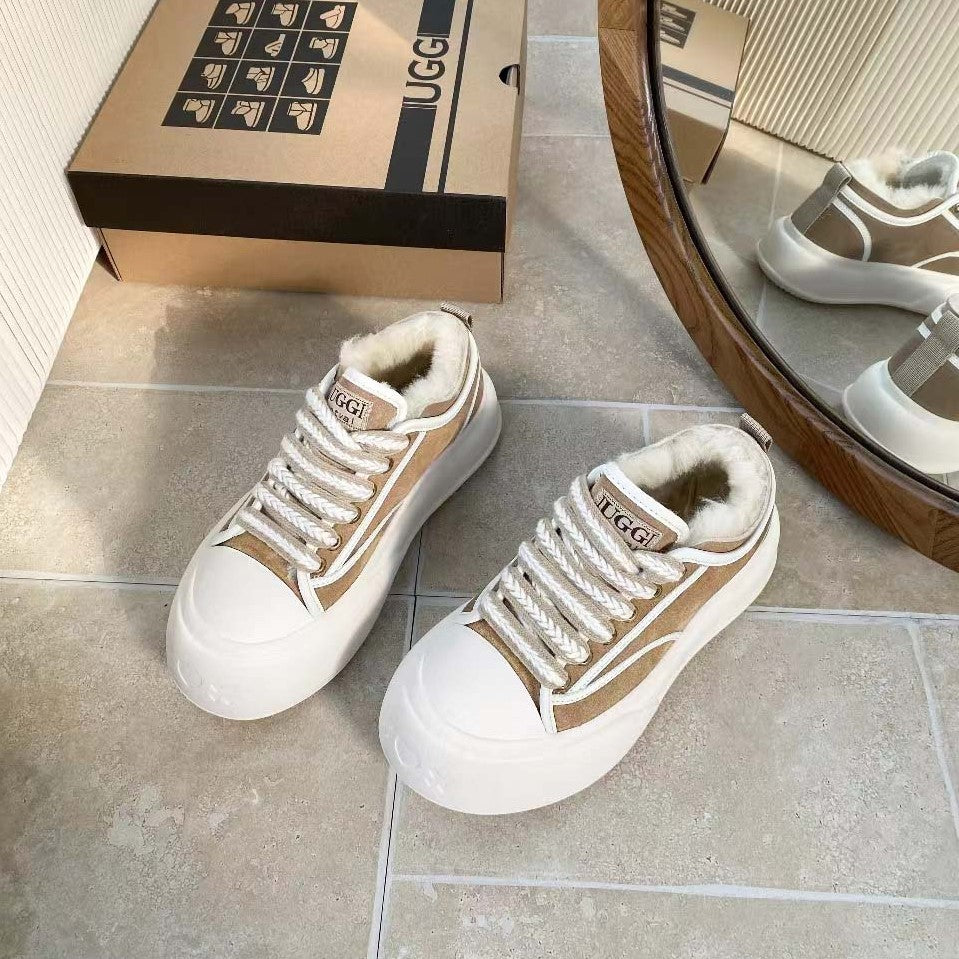 UGG Casual Sports Sneakers Sand White Suede Wool Rubber 512826