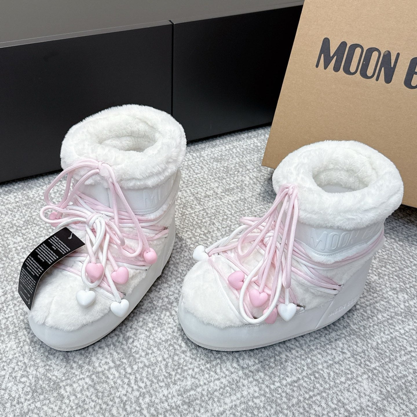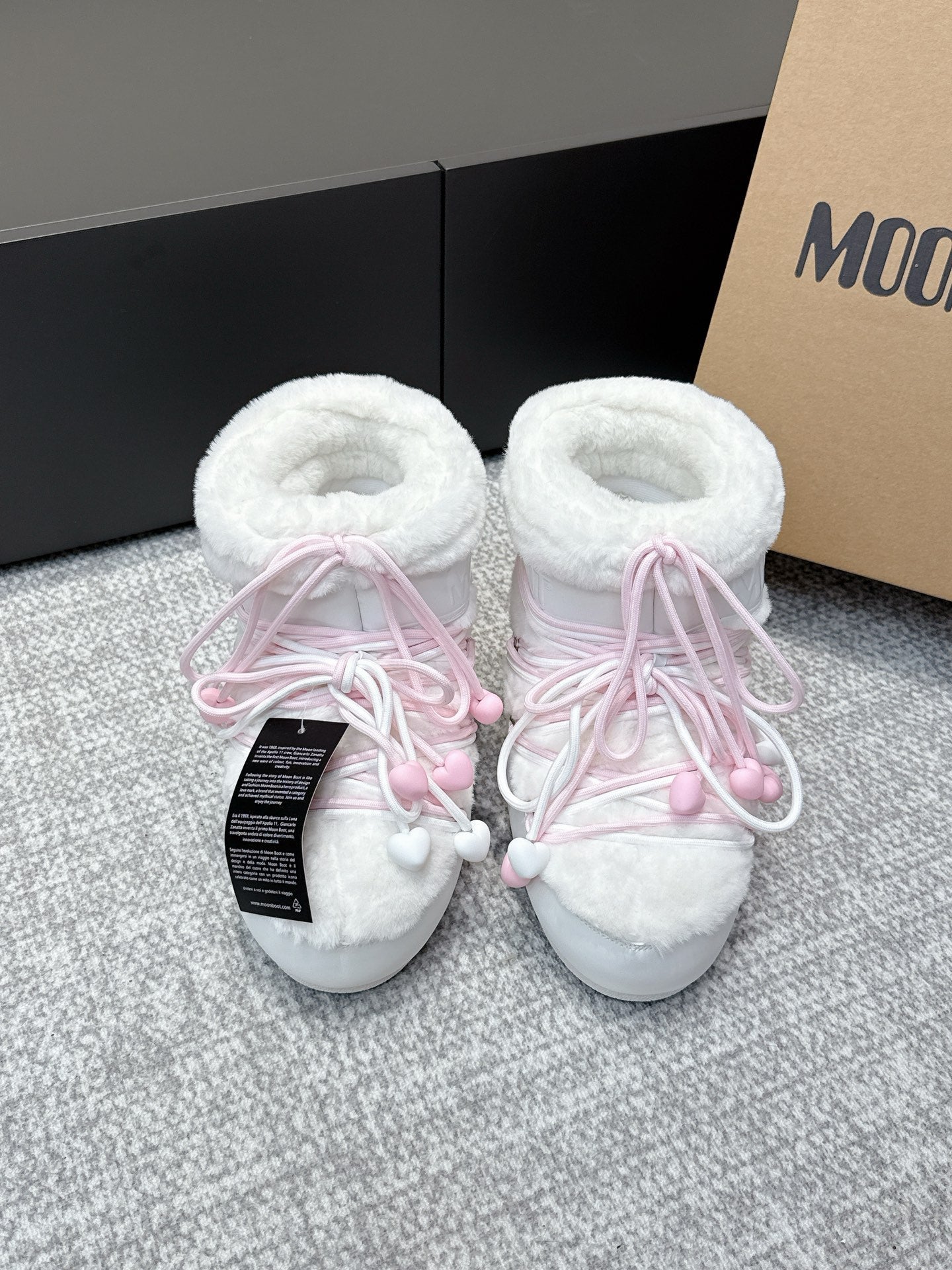 Moon Boot Icon Low Fur Off- White Pink Leather Faux Fur 515588