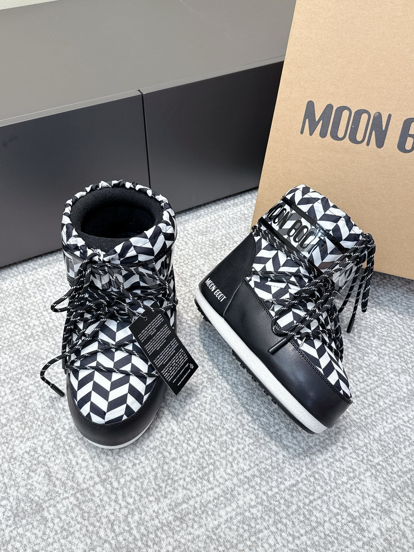 Moon Boot Icon White Black Geometric Print Leather Cavas 515586