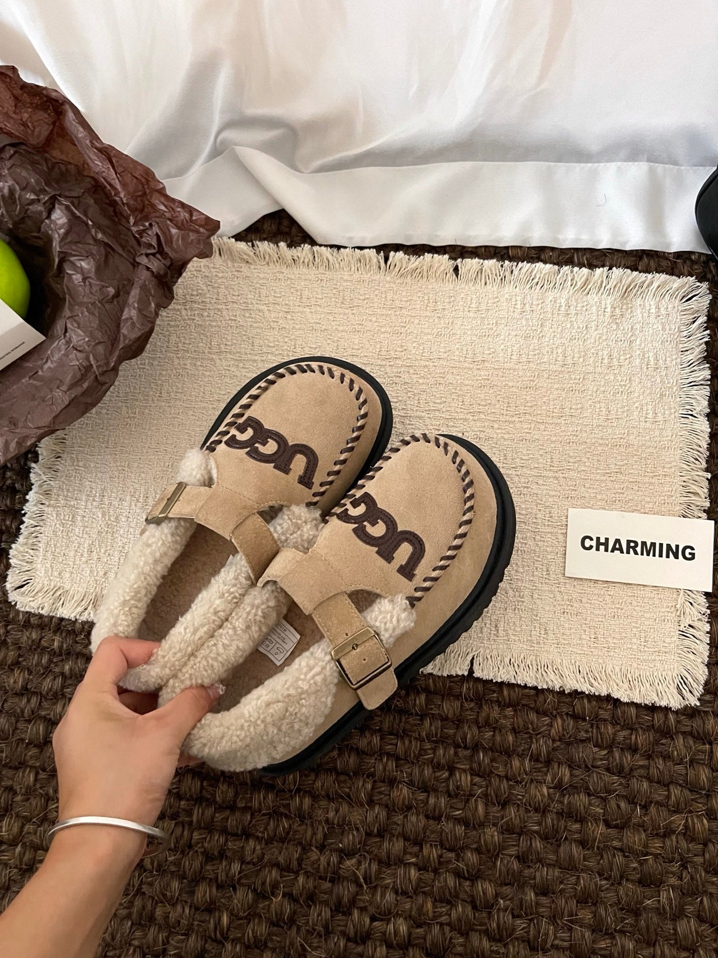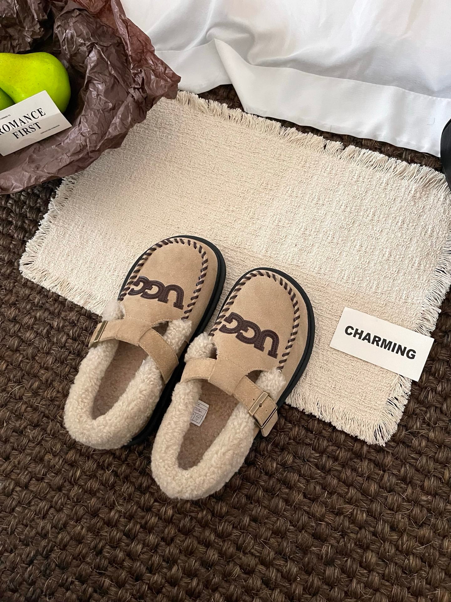 UGG Teddy Loafers Khaki Suede Brown Sheepskin Wool 512892