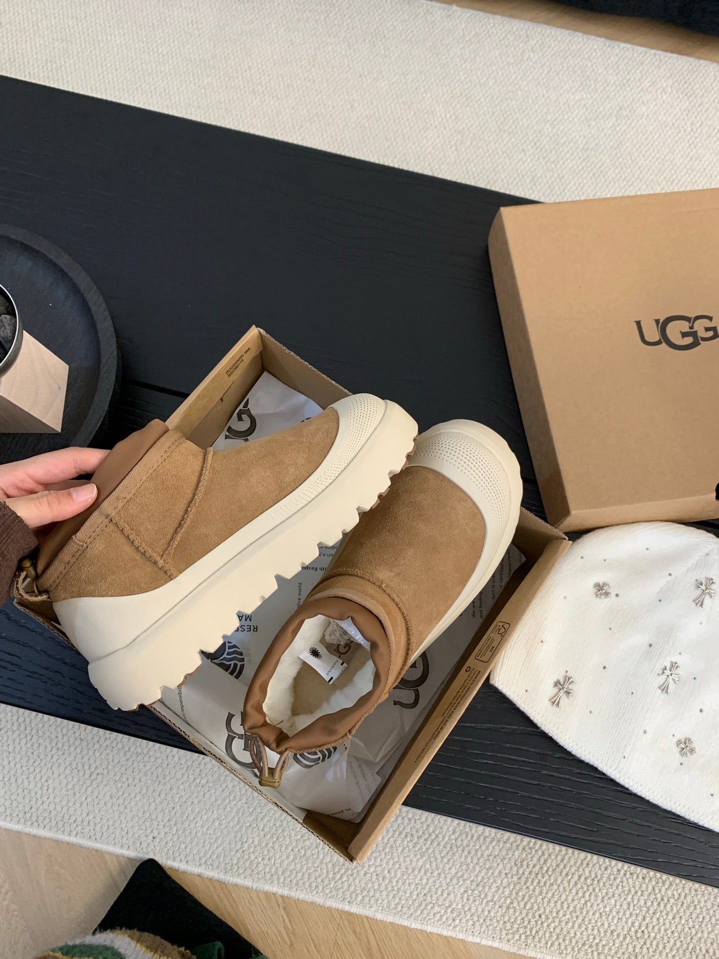 UGG Ultra Mini Ankle Boots Brown Cream Suede Rubber 512897