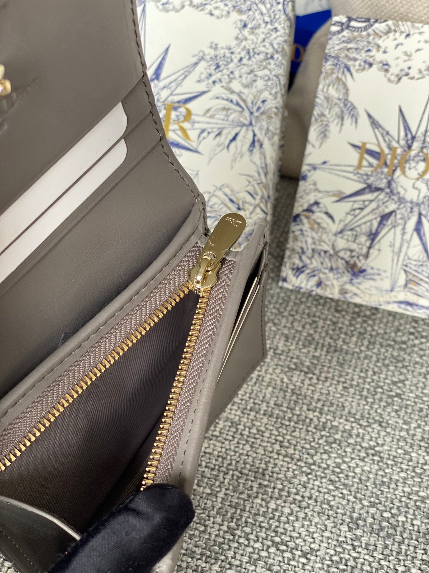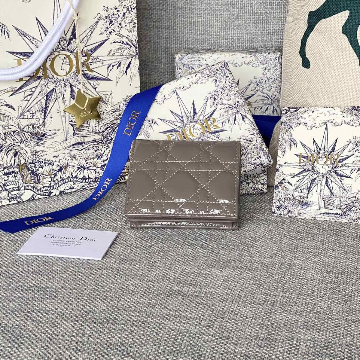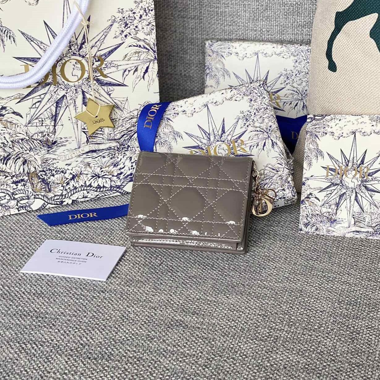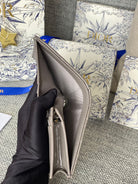 CD Caro 11cm Compact Wallet Shiny Grey Calfskin