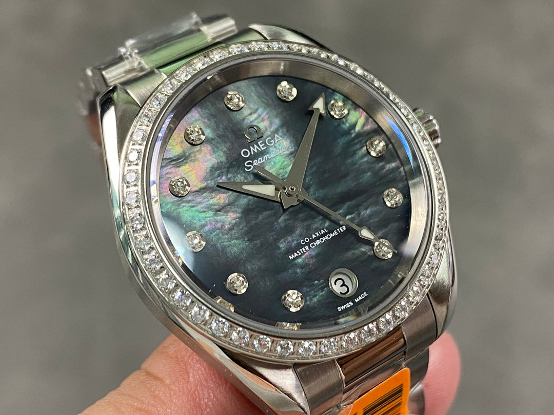 Omega Seamaster 34mm Diamond Mother Of Pearl Dial