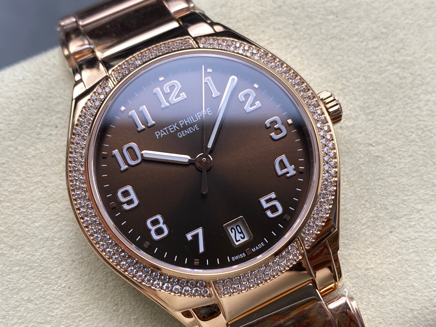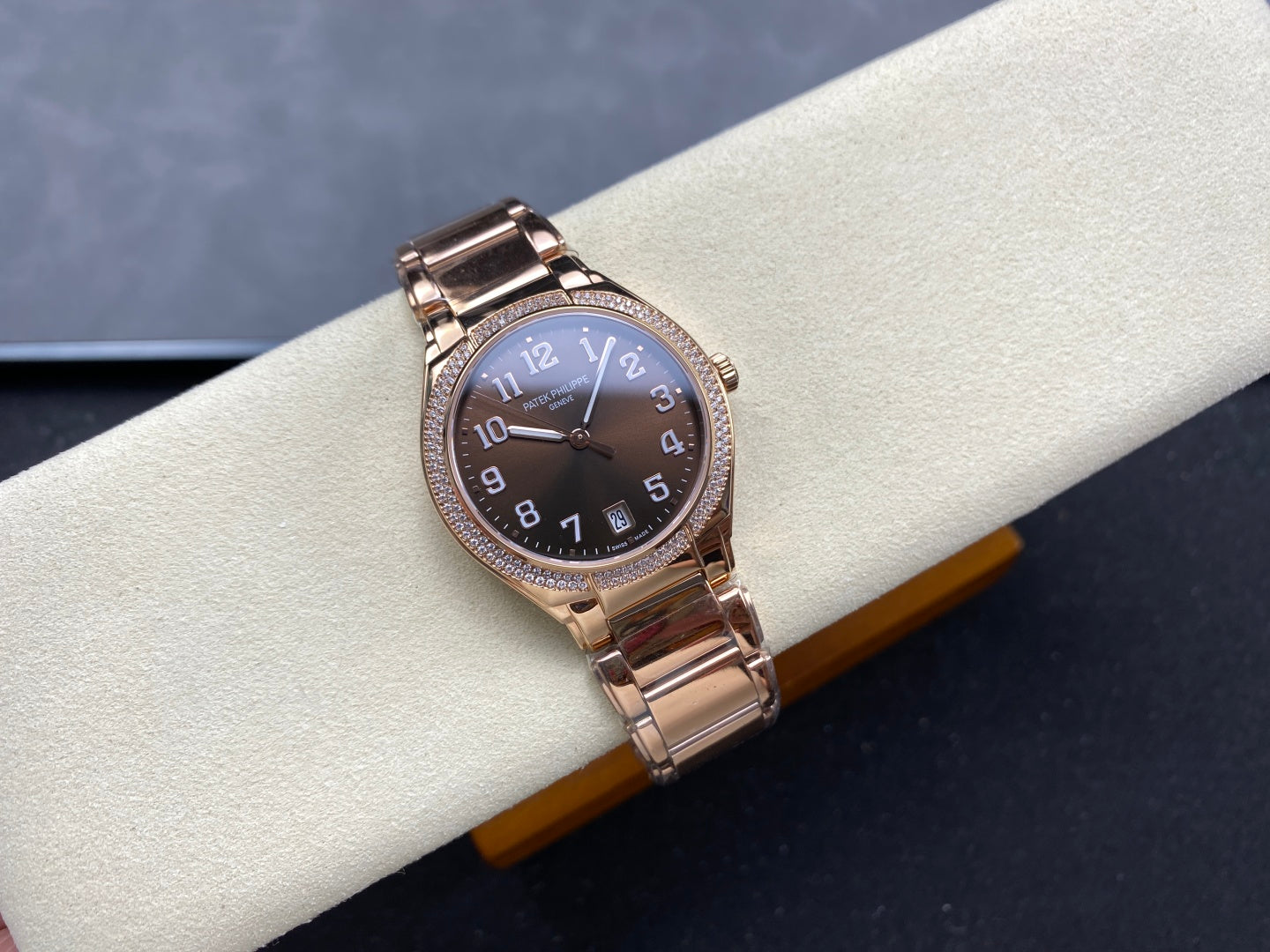 PATEK Twenty-Four 36mm Diamond Pink Gold Chocolate Dial