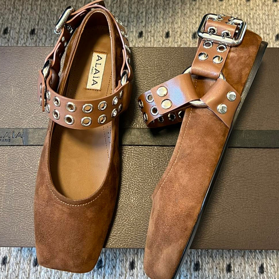 Alaia 25 Biker Ballet Flats Brown Suede 291057