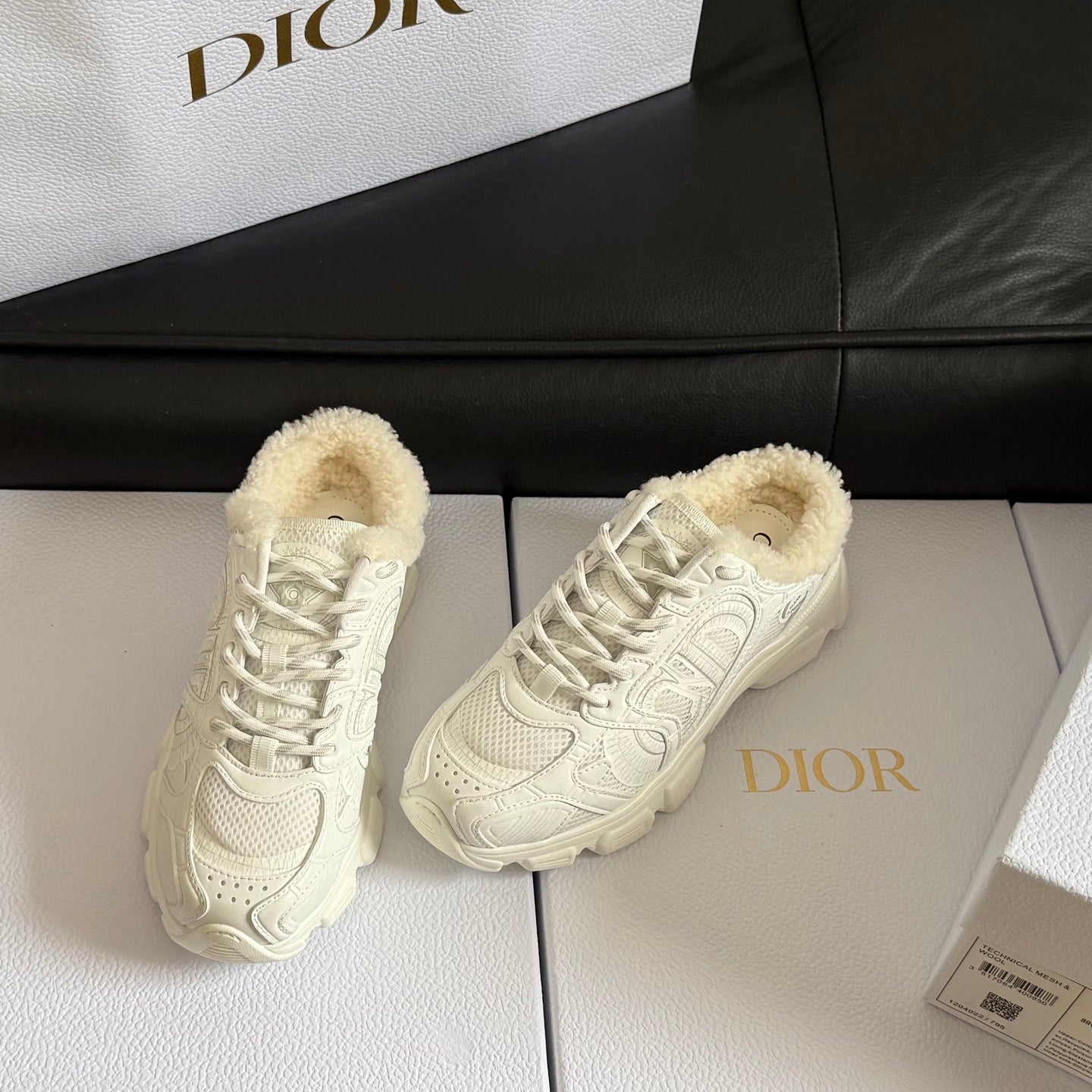 Dior 25 Chrono Sneakers Light Beige Fur Calfskin 530323