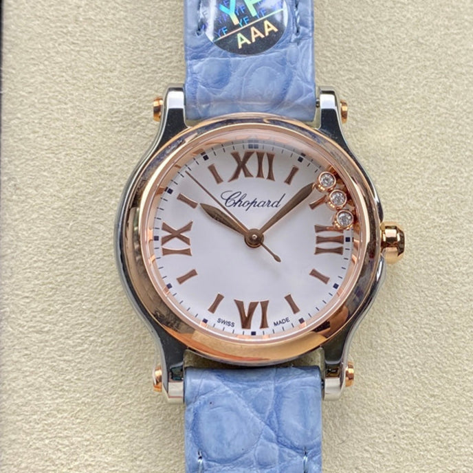 Happy Diamonds 30mm Pink Gold Blue Dial