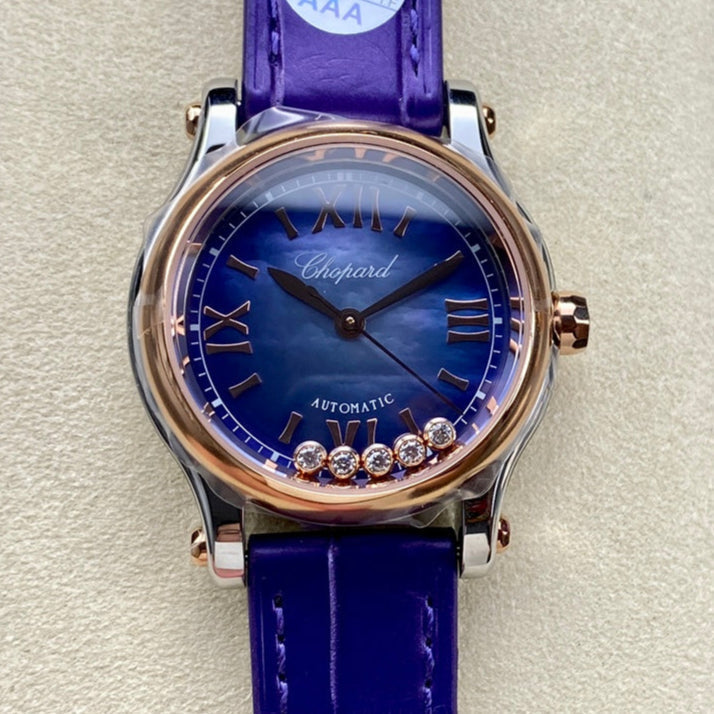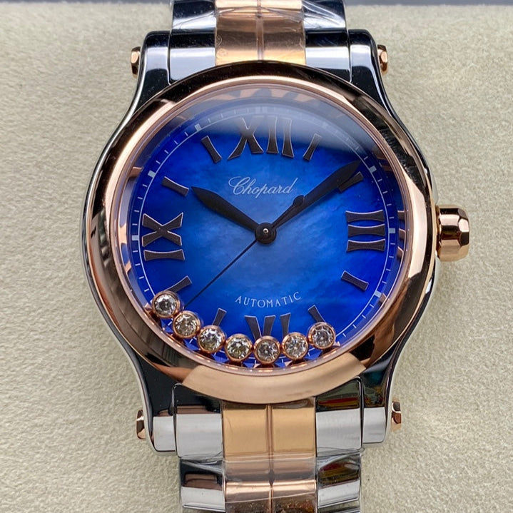 Happy Diamonds 36mm Pink Gold Deep Blue Dial