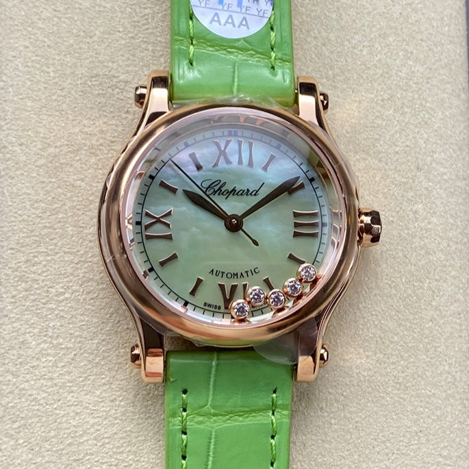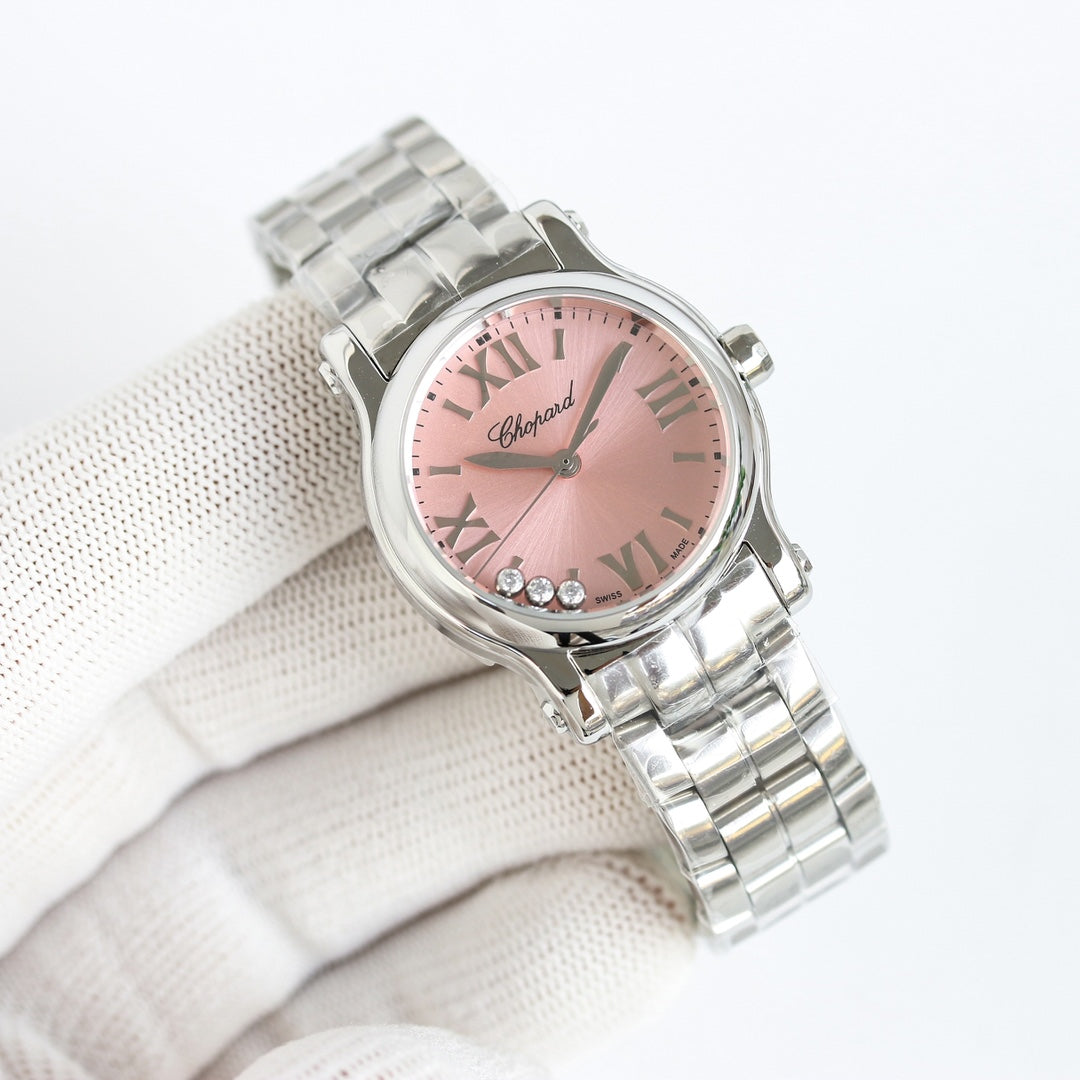 Happy Diamond Pink 36mm Pink Gold White Dial