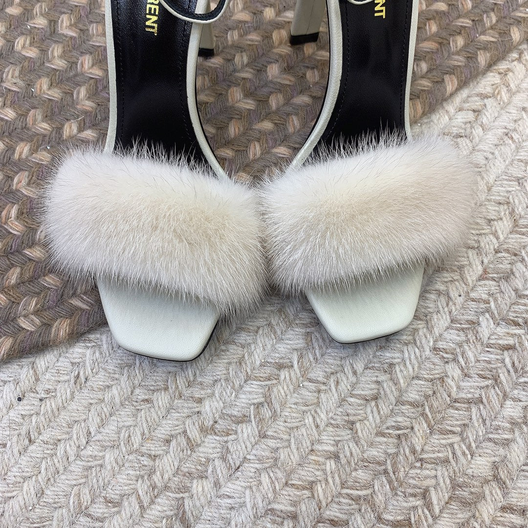 HIGH HEELS SQUARE TOE IN WHITE MINK FUR