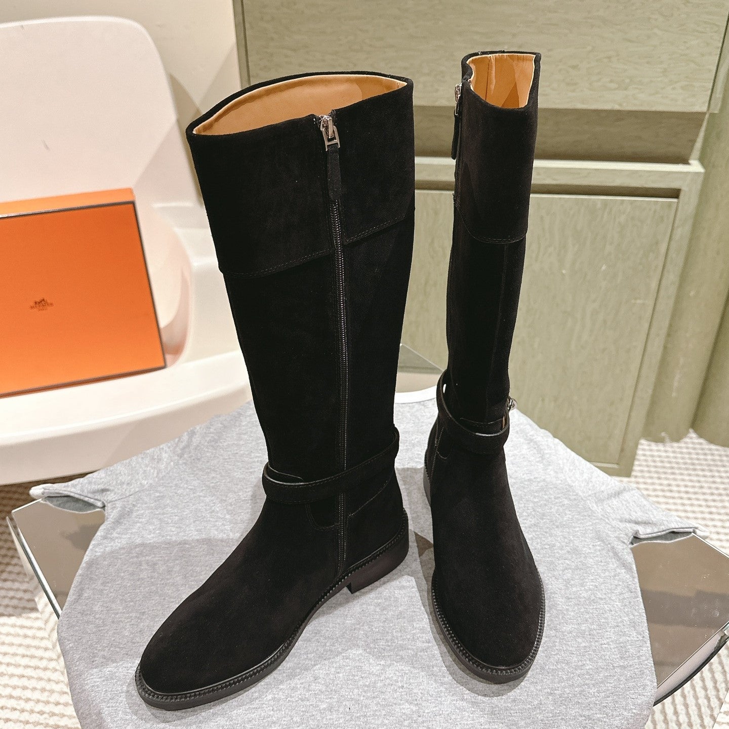 HM 24ss Kelly Martin Long Boots 35mm Black Suede 445502