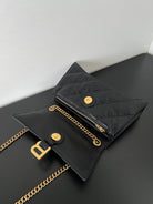 CRUSH CHAINED BAG 22 IN BLACK QUILTED CRUSHED CALFSKIN GOLD HARDWARE