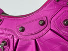 LE CAGOLE SMALL SHOULDER BAG 26 WITH RHINESTONES IN DEEP PINK CROCODILE EMBOSSED CALFSKIN