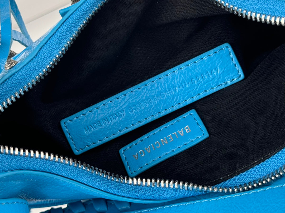 LE CAGOLE SMALL SHOULDER BAG 26 WITH RHINESTONES IN DODPER BLUE LAMBSKIN