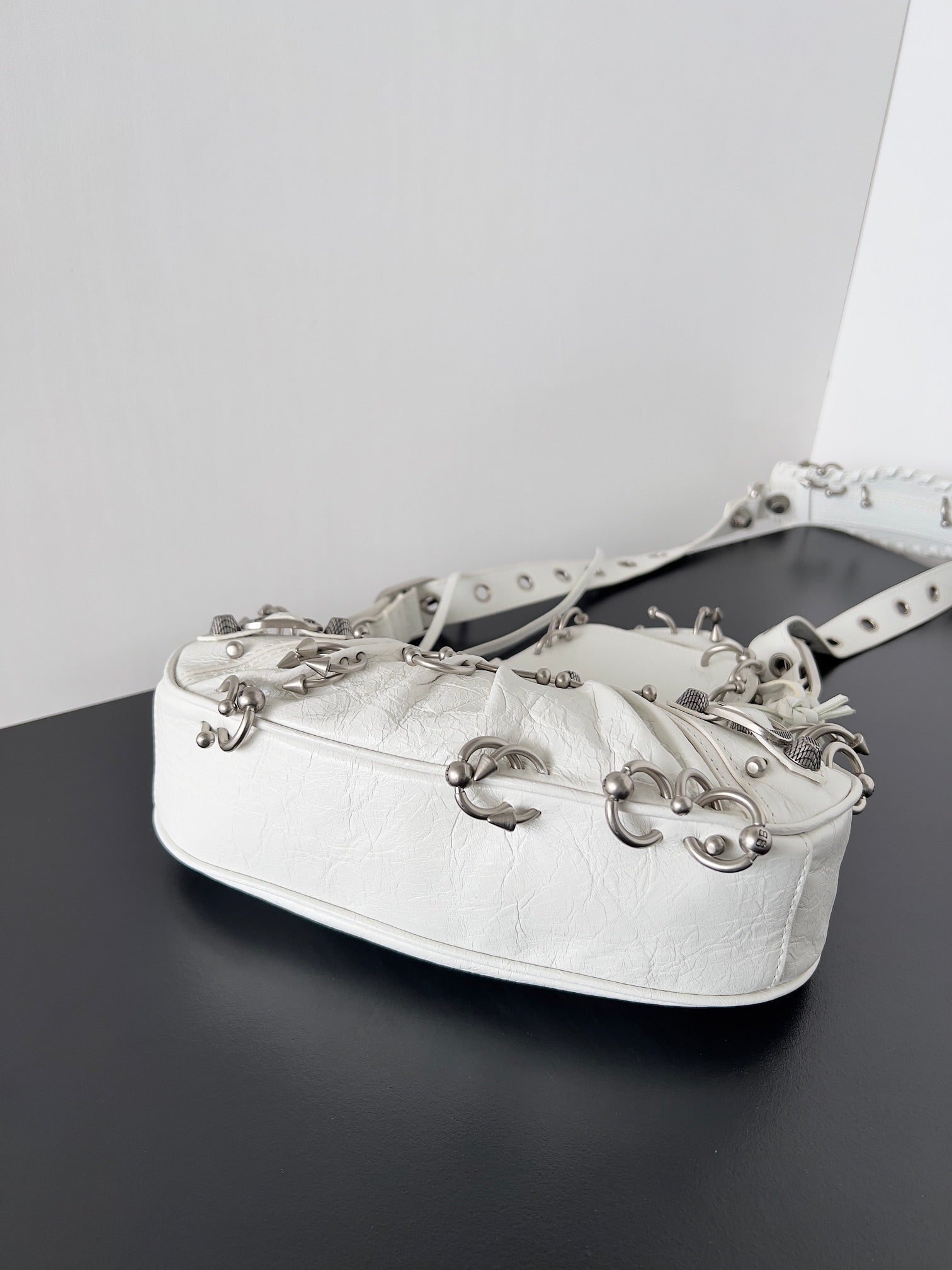 LE CAGOLE XS SHOULDER BAG 26 IN WHITE ARENA LAMBSKIN WITH PIERCING SILVER HARDWARE