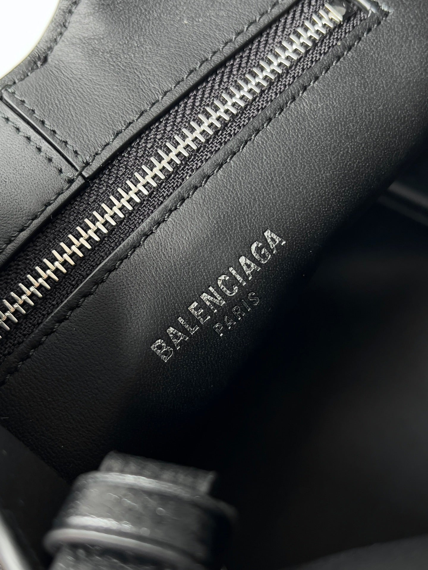 SILVER LOCKER SHOULDER BAG 24 IN BLACK CALFSKIN
