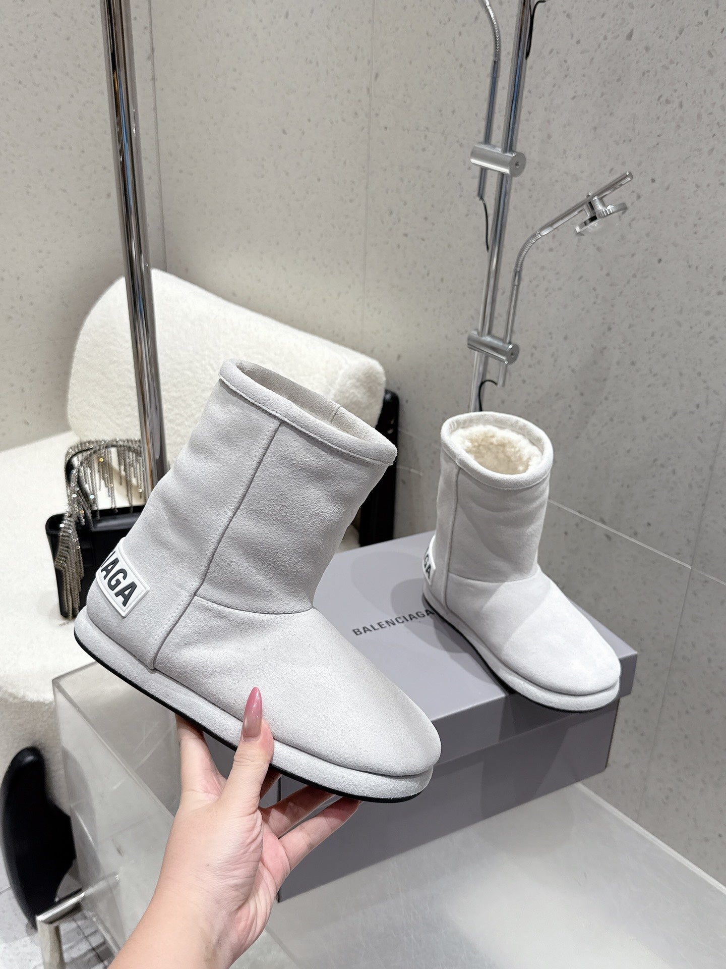 Balenciaga Alaska Soft Booties Pale Gray Suede Shearing 554396