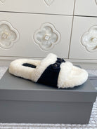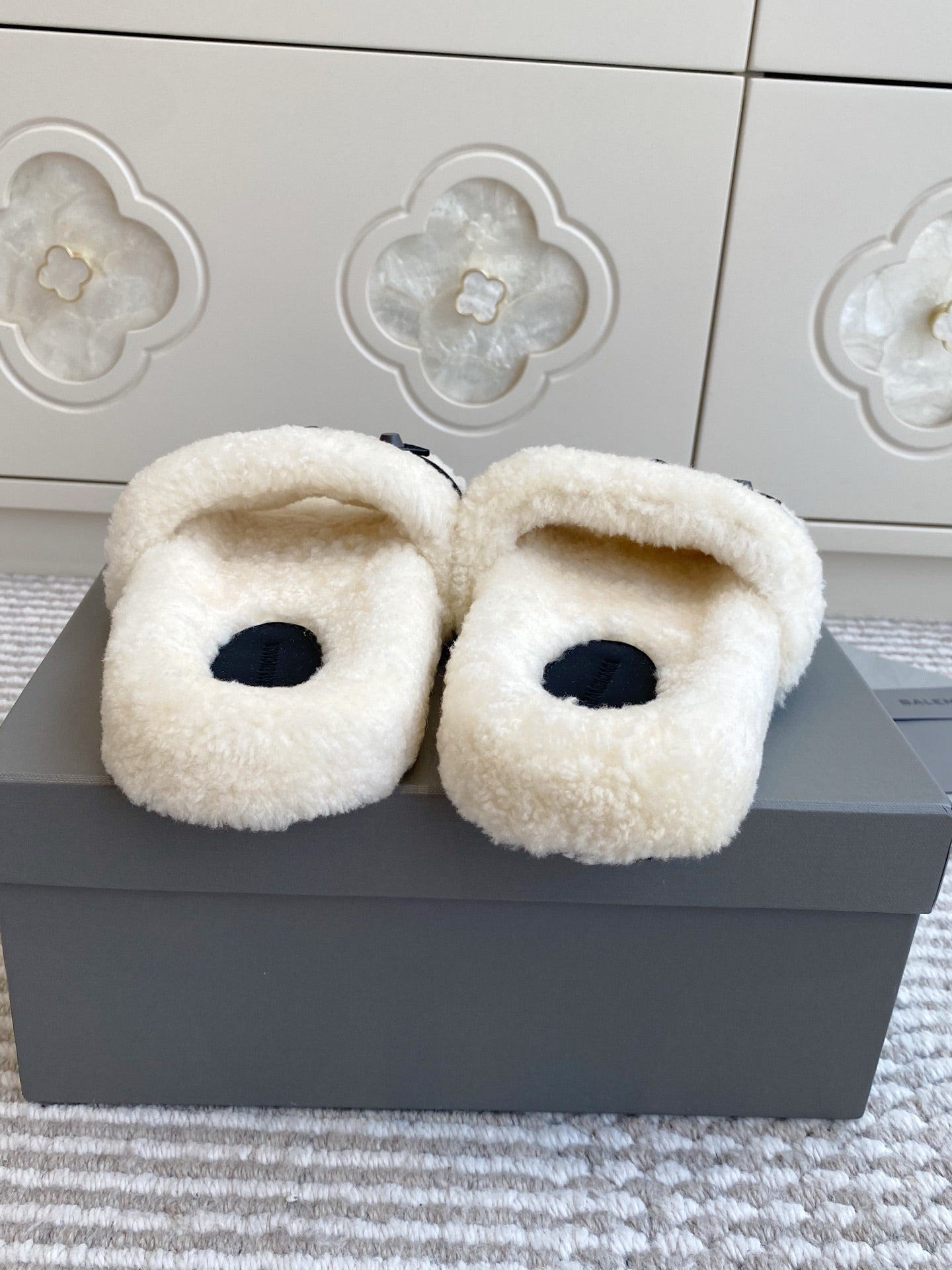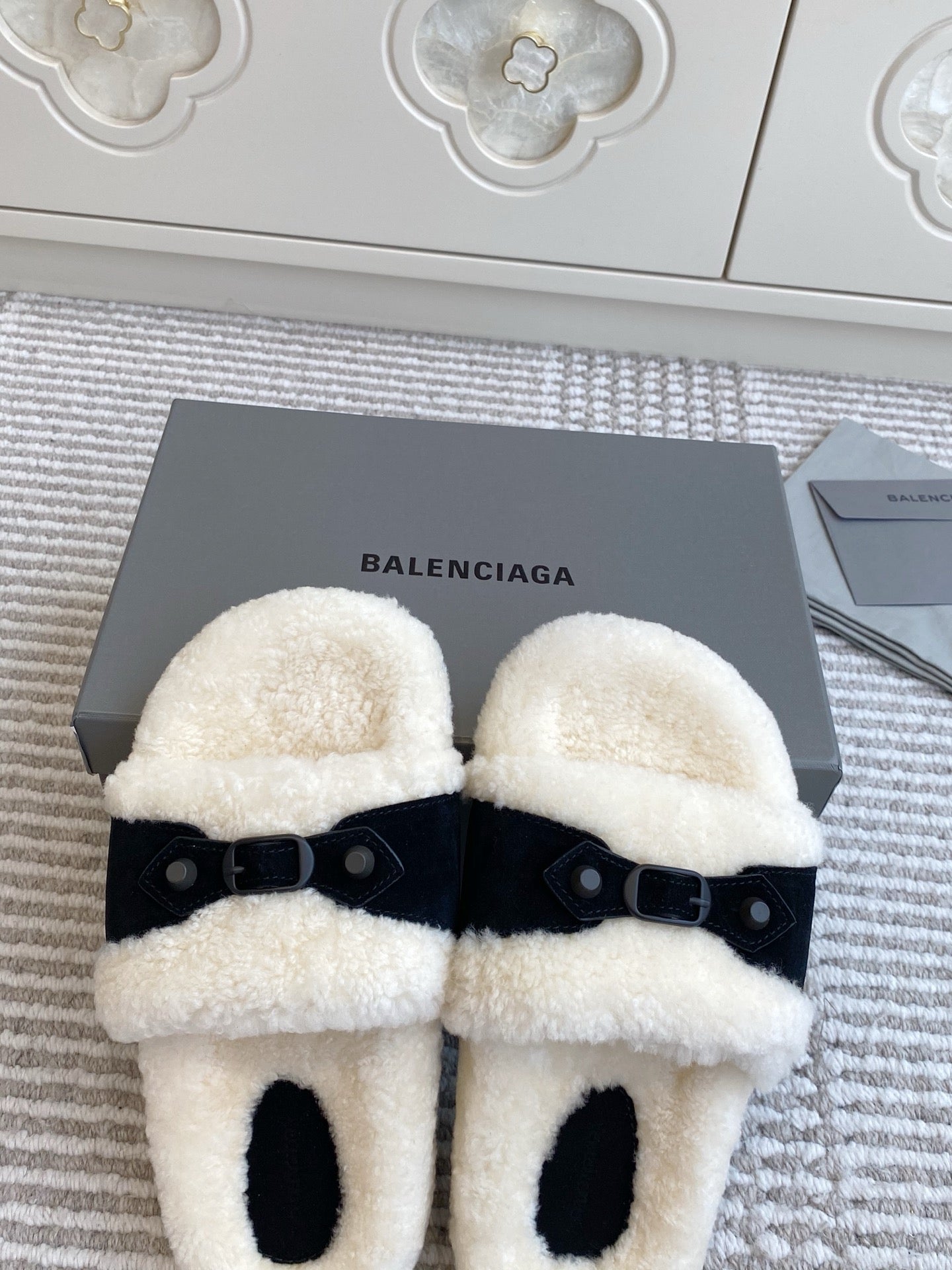 Balenciaga Classic Buckle Slippers White Black Wool 543002