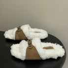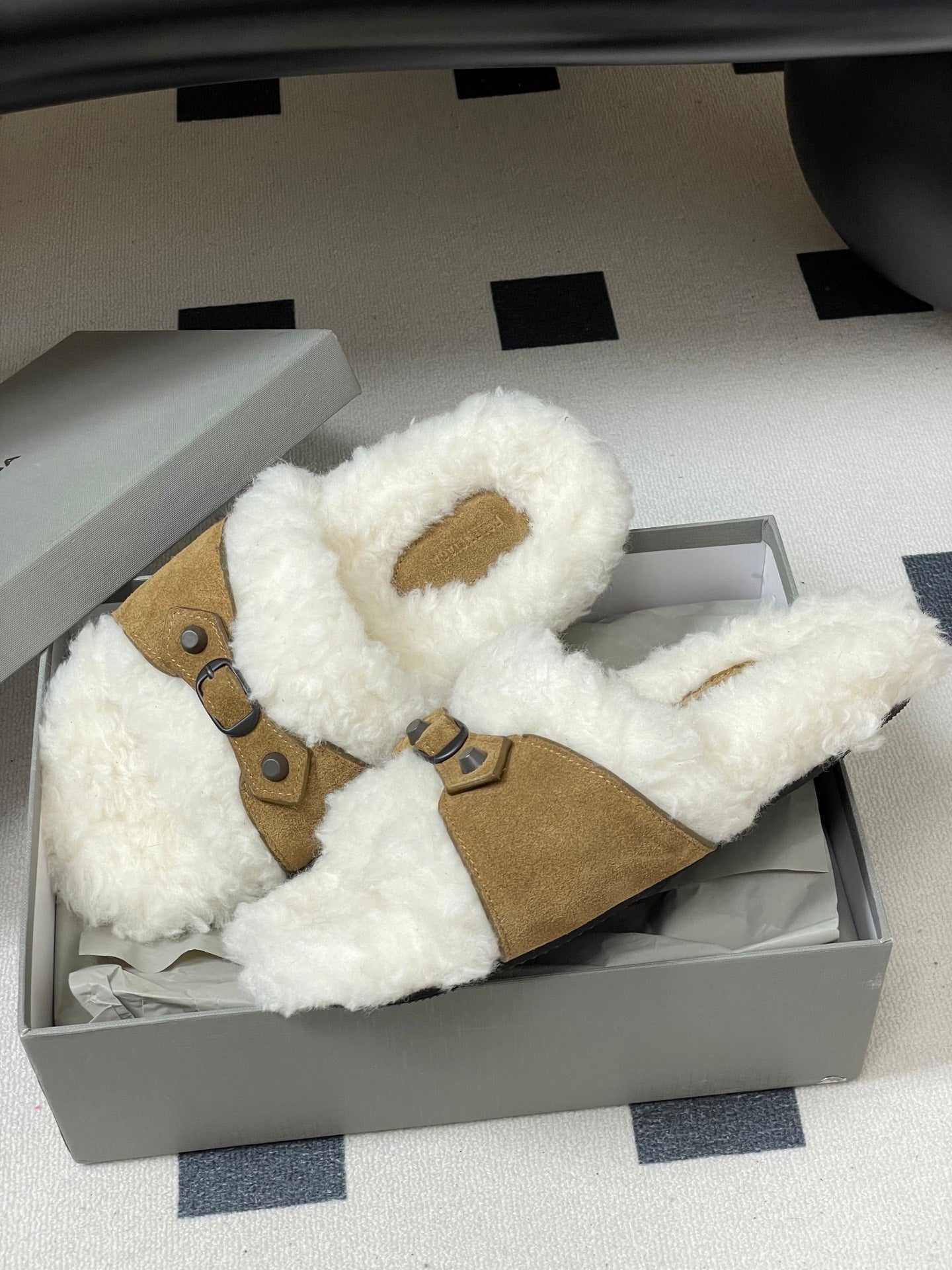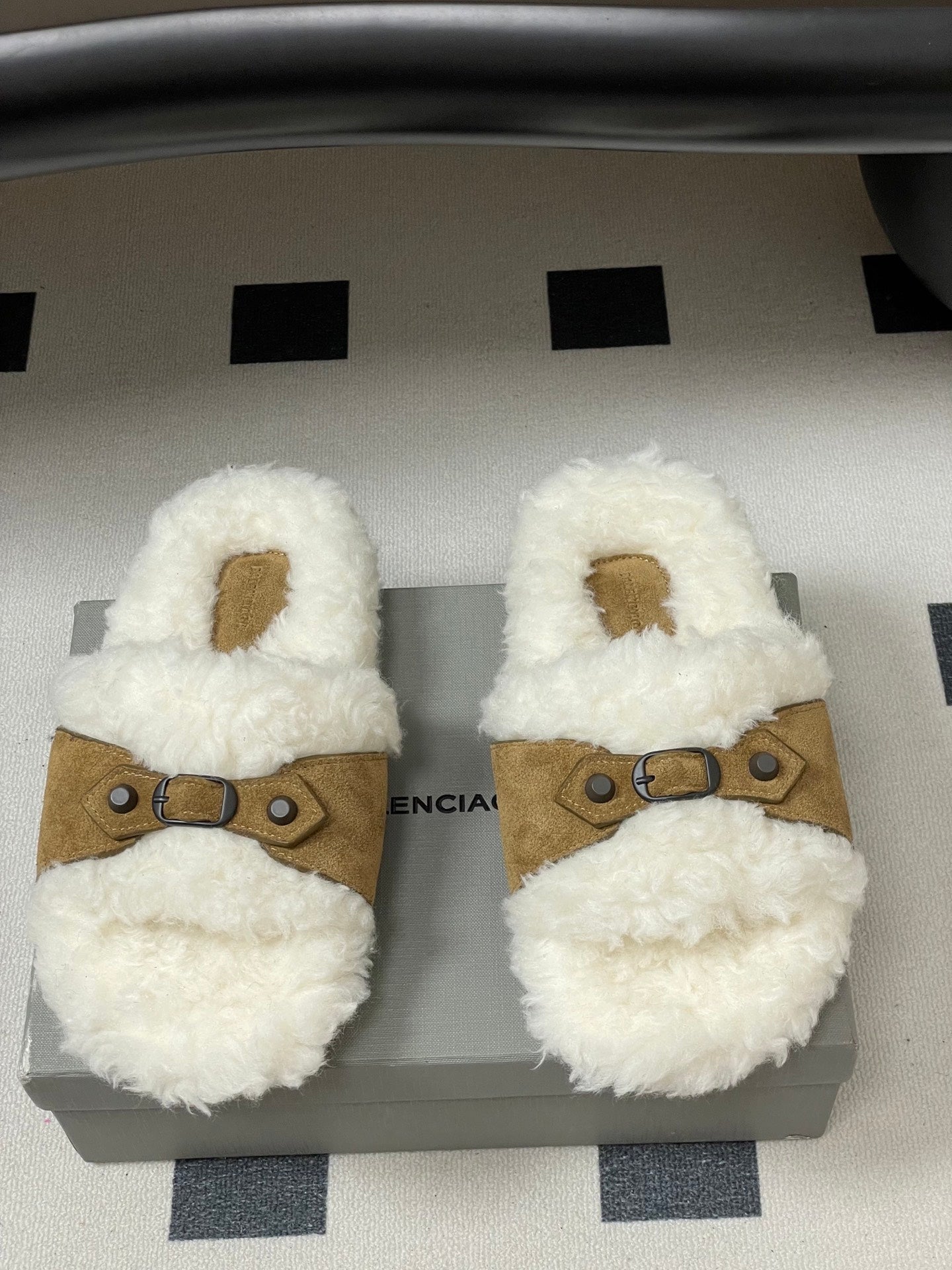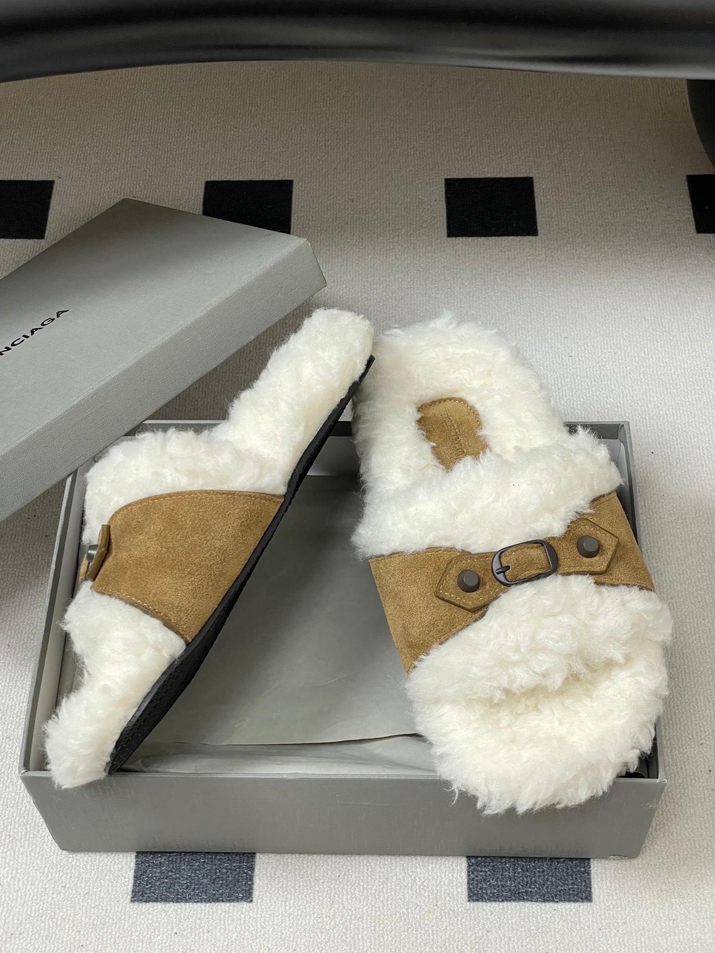 Balenciaga Classic Buckle Slippers White Brown Wool 535029