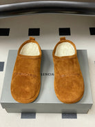 Balenciaga Mule Slip-On Caramel Brown Suede Wool 534531