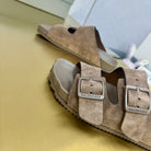 BIRKENSTOCK SLIPPERS IN LIGHT BROWN SUEDE