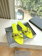 CAGOLE FLAT MULES IN LIME YELLOW CALFSKIN