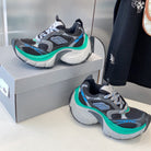 DAD SHOES IN GRAY MIX MINT GREEN AND BLUE MESH AND CALFSKIN