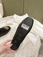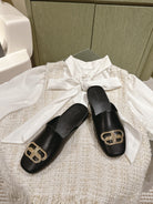 FLAT MULES IN BLACK SMOOTH CALFSKIN GOLD BUCKLE
