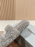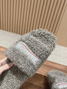 FURRY SLIDES IN GRAY CURLY SHEARLING