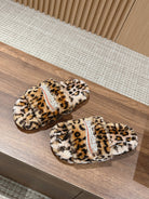 FURRY SLIDES IN LEOPARD PRINT RABBIT FUR