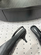 HEELED SLINGBACK 45 MM IN BLACK SMOOTH LAMBSKIN GOLD HARDWARE