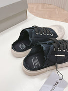 PARIS MULES IN BLACK DESTROYED DENIM AND RUBBER