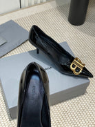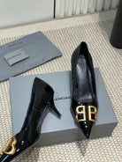 POINTED BB GOLD BUCKLE HIGH PUMPS 60MM IN BLACK PATENT CALFSKIN