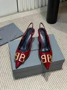POINTED BB GOLD BUCKLE HIGH SLINGBACK 60MM IN RED PATENT CALFSKIN