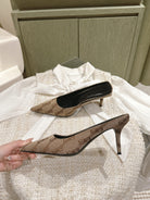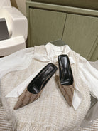 POINTED HIGH MULES IN BEIGE MONOGRAM JACQUARD FABRIC
