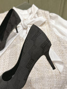 POINTED HIGH PUMPS IN BLACK MONOGRAM JACQUARD FABRIC