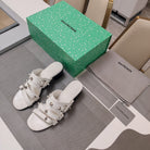 STRAPPY MEDIUM HEELED SANDALS IN WHITE STUDDED WAX-OIL SHEEPSKIN