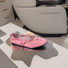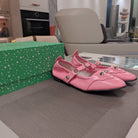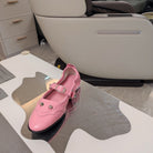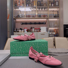 STUDDED MARY JANE FLATS IN SEA PINK SHINY LAMBSKIN