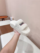 THICK-SOLED SLIPPERS IN WHITE WOOL