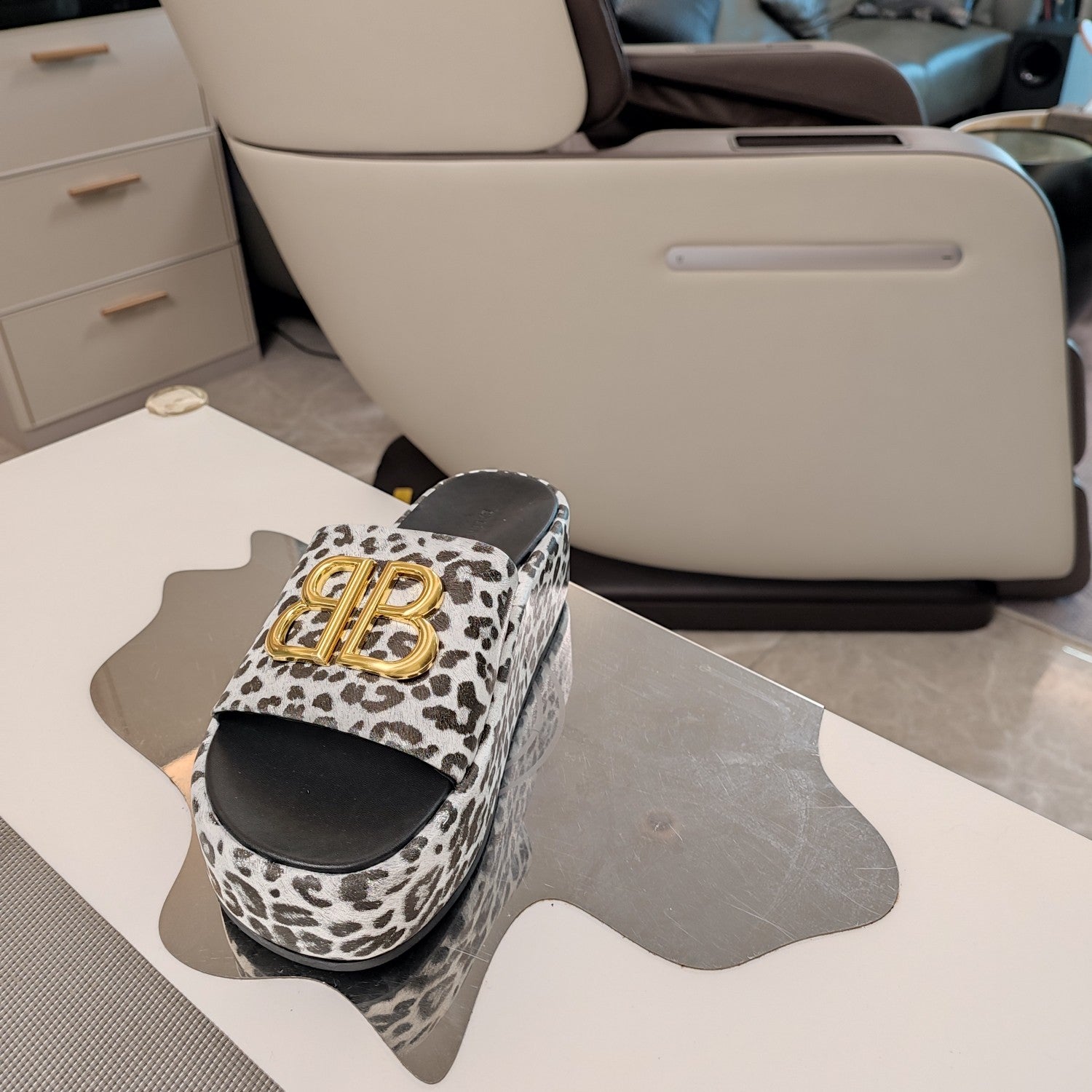 RISE SANDAL THICK-SOLED IN BROWN LEOPARD PRINT CALFSKIN